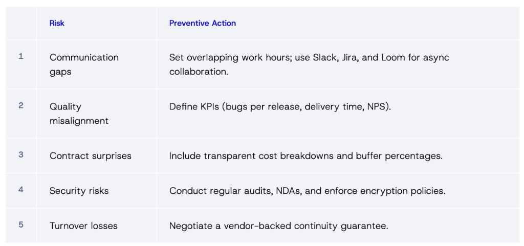 - Hidden cost: Extra 10–15% of project budget on re-onboarding.