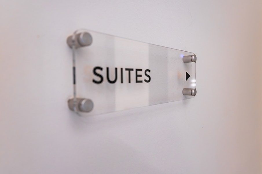 • Reception areas benefit from layered acrylic signs that create depth without visual clutter.